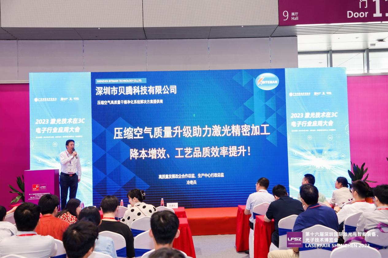 貝騰科技作為國家級高新技術企業(yè),深圳市政府、寶安區(qū)政府重點扶持企業(yè),壓縮空氣后處理領軍企業(yè),受邀參加該盛會并作主題報告。會上,貝騰科技高質(zhì)量發(fā)展政企合作總監(jiān)冷奇兵先生就《壓縮空氣質(zhì)量升級幫助激光精密加工降本增效、工藝品質(zhì)效率提升》發(fā)表主題演講。演講內(nèi)容層層遞進、深入淺出,會議現(xiàn)場反響熱烈,引發(fā)了業(yè)內(nèi)人士的廣泛共鳴。
