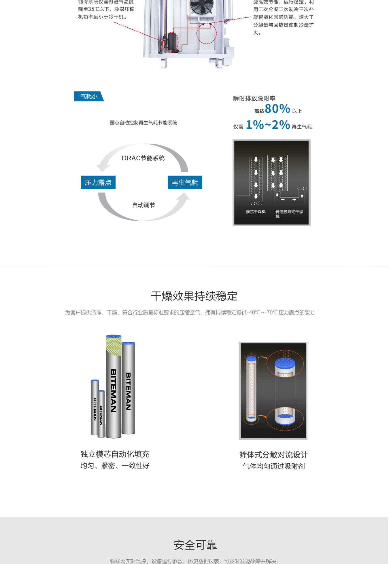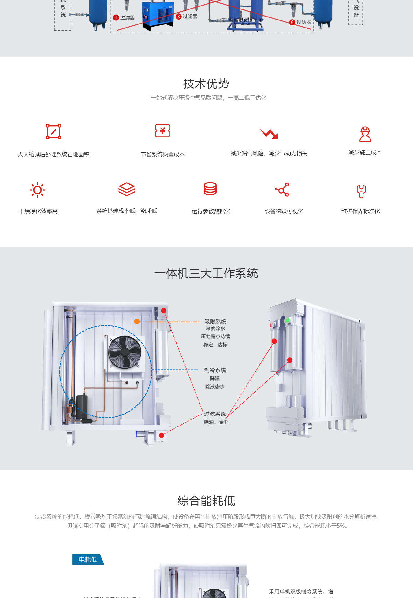 集成制冷、吸附、過濾三大系統(tǒng)一站式解決壓縮空氣品質(zhì)達標需求。