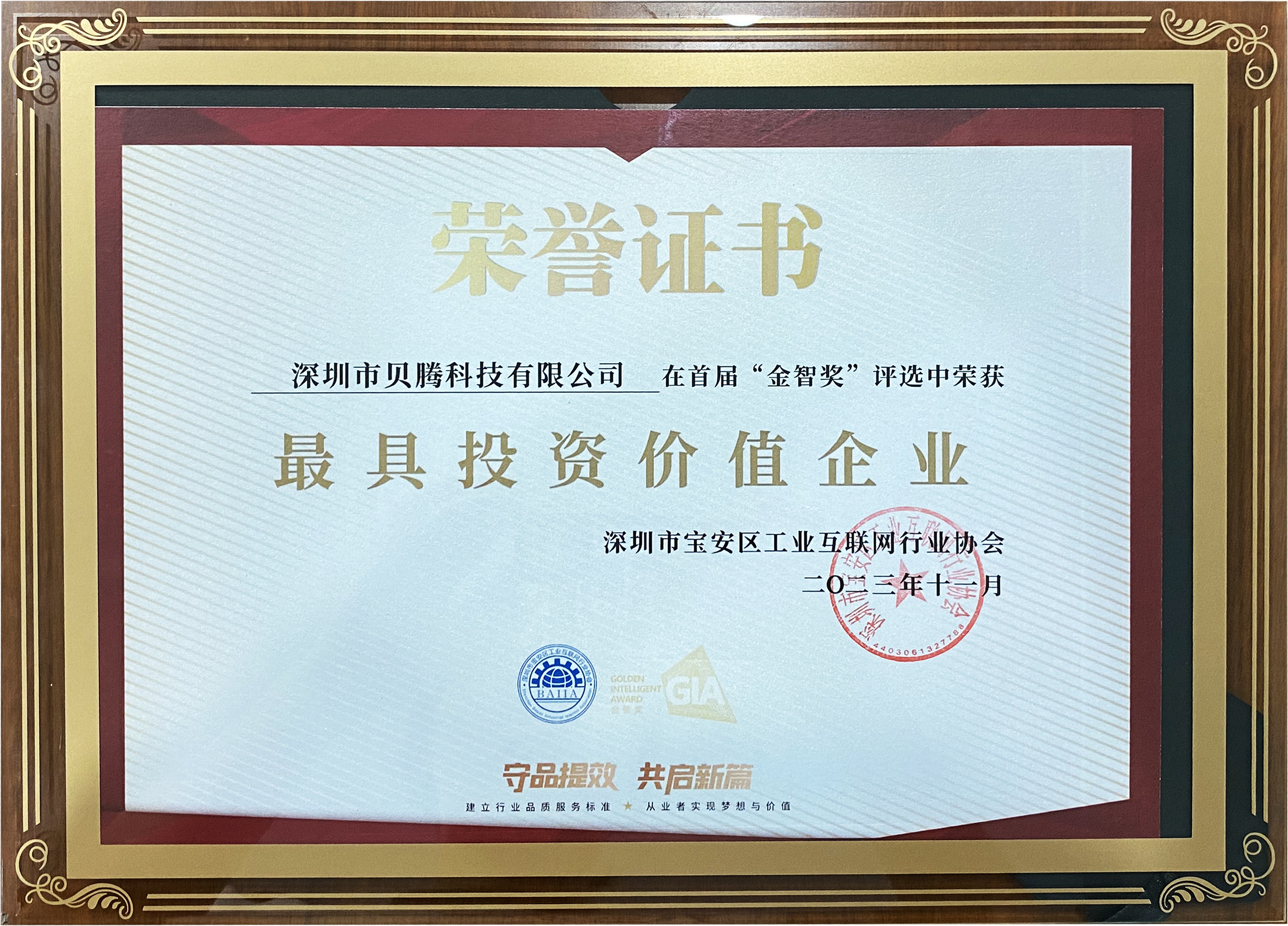 11月28日,《寶安區(qū)制造業(yè)企業(yè)數(shù)字化創(chuàng)新供需對(duì)接會(huì)暨寶安區(qū)軟件互聯(lián)網(wǎng)政策宣貫會(huì)-首屆“金智獎(jiǎng)”專精特新先進(jìn)企業(yè)頒獎(jiǎng)活動(dòng)》在深圳國(guó)際會(huì)展中心隆重舉辦。該活動(dòng)由寶安區(qū)工業(yè)和信息化局指導(dǎo)。深圳市貝騰科技有限公司在首屆“金智獎(jiǎng)”先進(jìn)企業(yè)評(píng)選中榮獲“最具投資價(jià)值企業(yè)”。