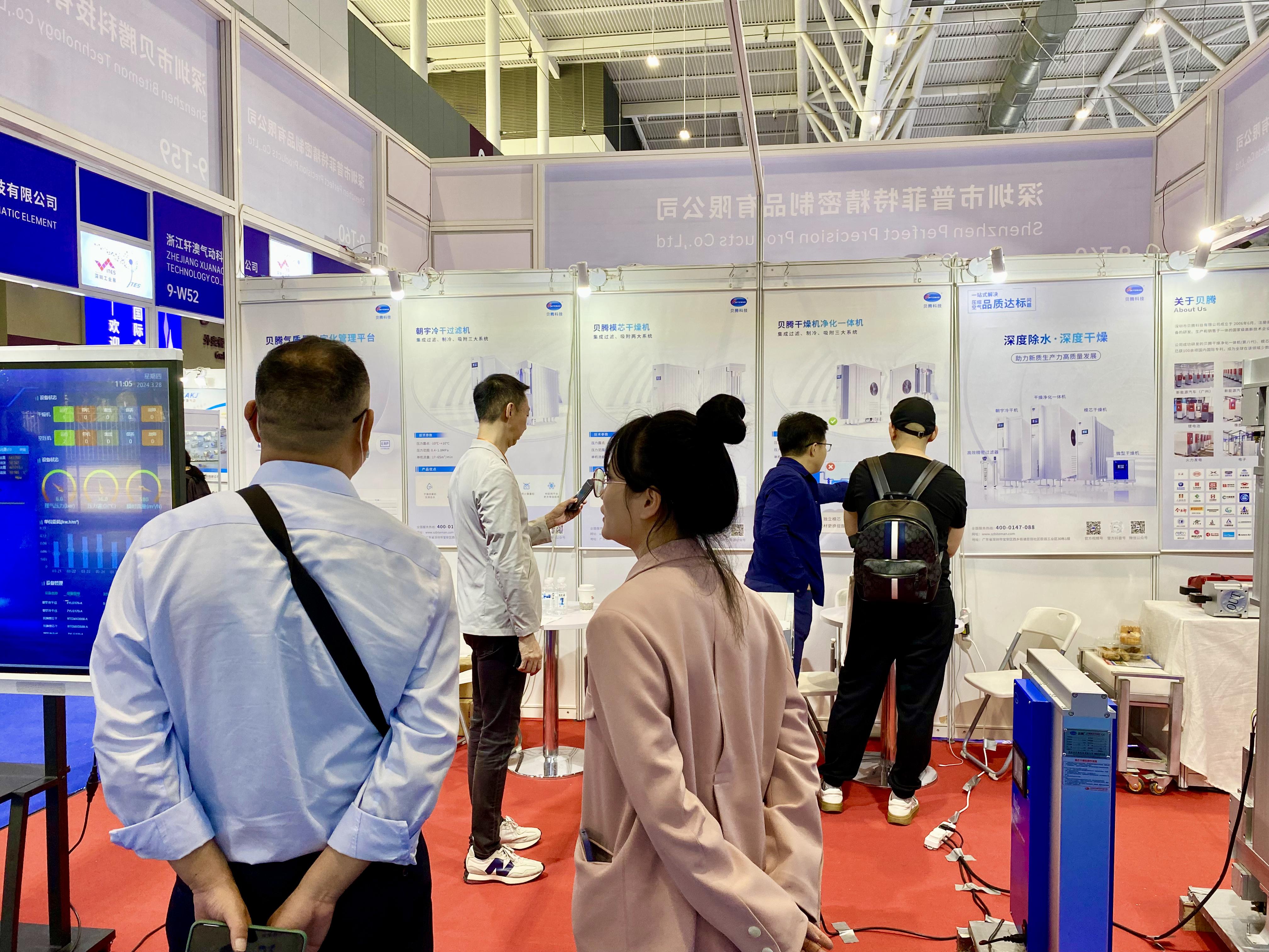 作為壓縮空氣干燥凈化領(lǐng)域的佼佼者,貝騰科技攜壓縮空氣干燥凈化一體機(jī)、模芯干燥機(jī)、朝宇冷干過濾機(jī)、貝騰高效精密過濾器隆重亮相2024深圳工業(yè)展,為企業(yè)提供性能更穩(wěn)定、更高效的動(dòng)力系統(tǒng)氣質(zhì)量解決方案,吸引眾多行業(yè)專家、客商駐足交談。