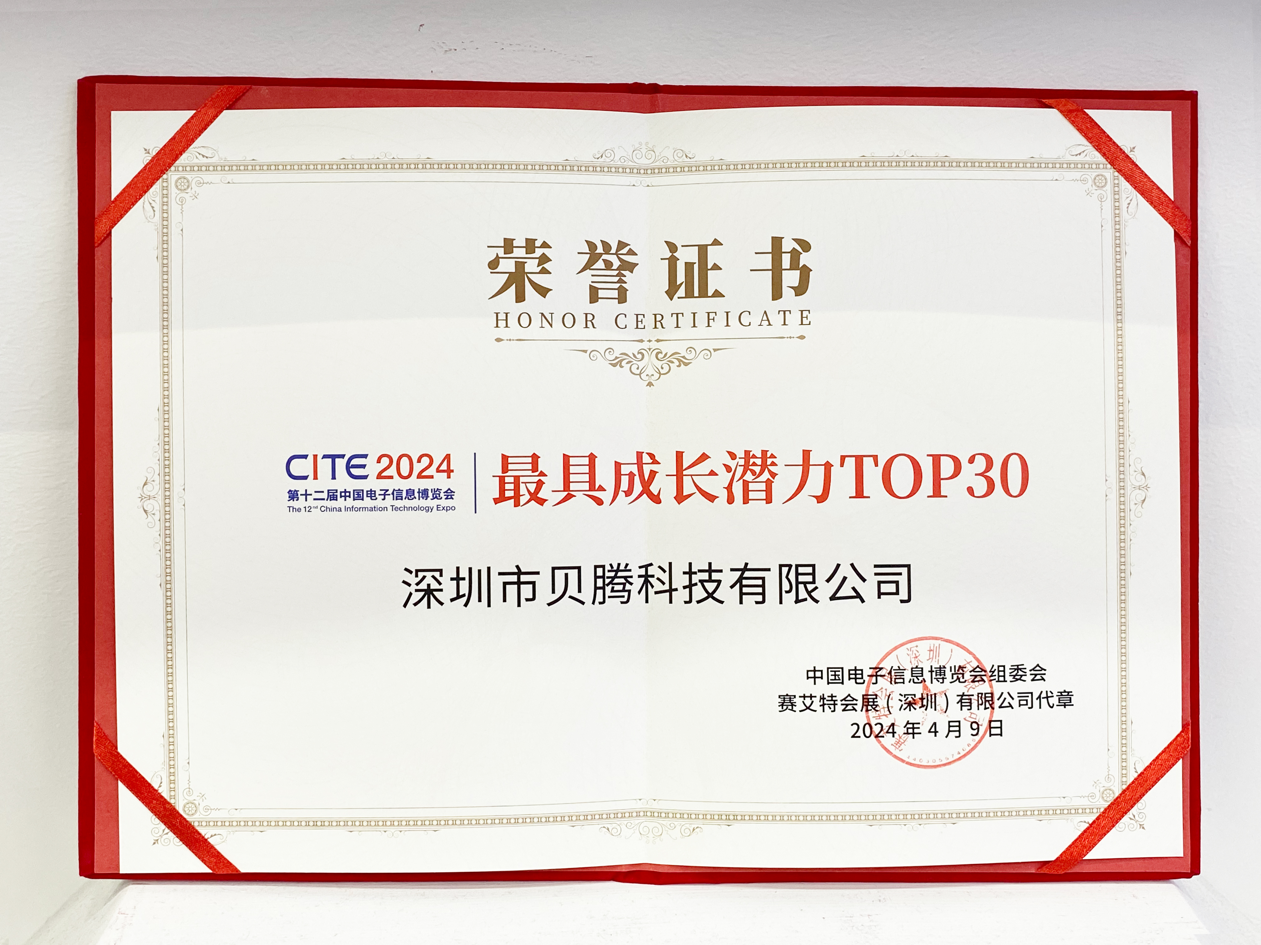 展望未來·潛力無限 | 熱烈祝賀貝騰科技入選CITE2024全國(guó)“專精特新”《最具成長(zhǎng)潛力Top30》