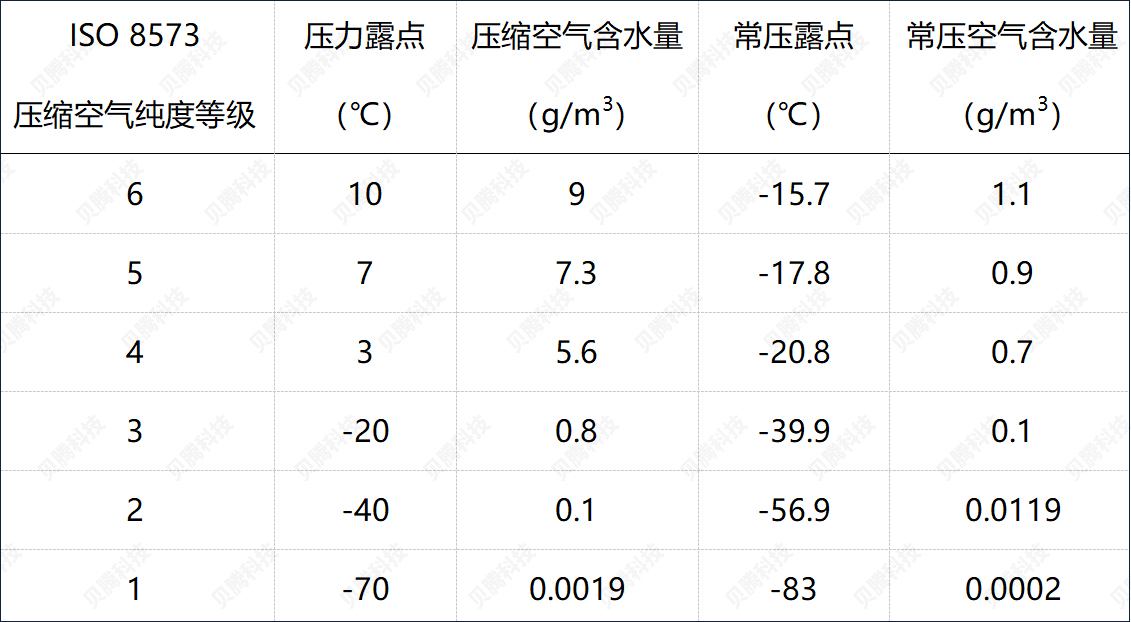 濕空氣被壓縮后,水蒸氣密度增加,溫度也上升。壓縮空氣冷卻時,相對濕度便增加,當溫度繼續(xù)下降到相對濕度達100%時,便有水滴從壓縮空氣中析出,這時的溫度就是壓縮空氣的“壓力露點”。壓力露點是壓縮空氣干燥度的指標,用溫度來表達壓縮空氣的含水量,跟壓縮空氣的實際溫度沒有關系。