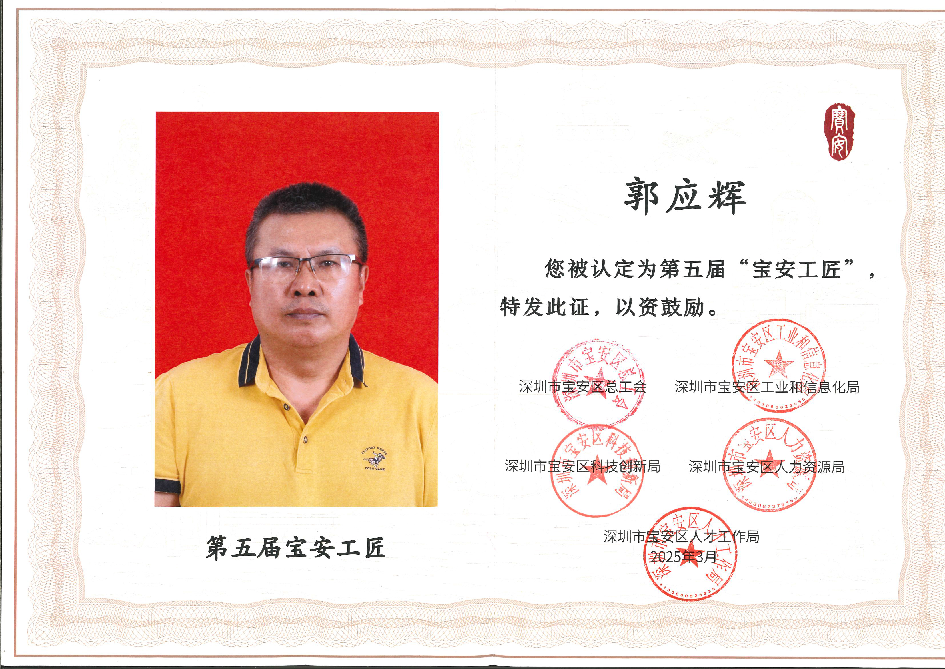 貝騰科技創(chuàng)始人郭應(yīng)輝榮獲 2024 年深圳市寶安區(qū)工匠稱號(hào)
